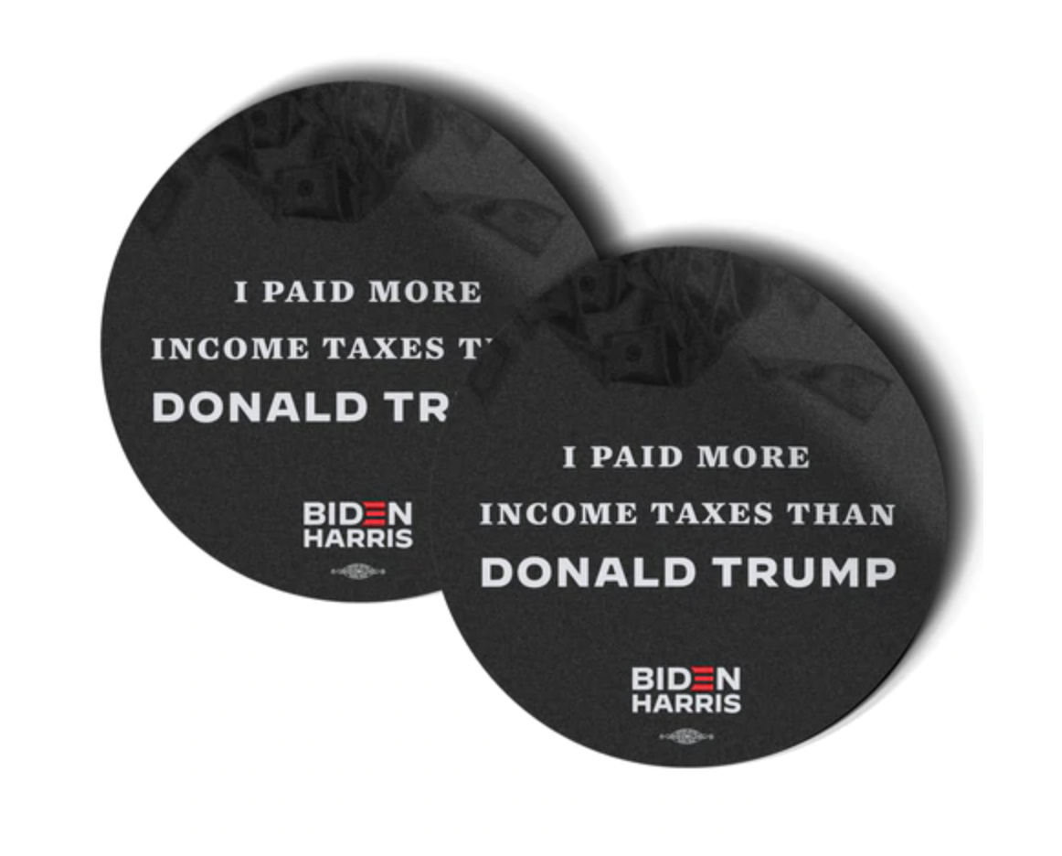 Biden 2020 biden harris 2020 democratic bumper sticker campaign joe biden color. Biden campaign sells i paid more income taxes than trump stickers the biden harris campaigns vinyl sticker two packs are priced ironically at 750. Colors are as shown above actual color might differ slightly due to your monitor color calibration. Quantity 5 pieces material.